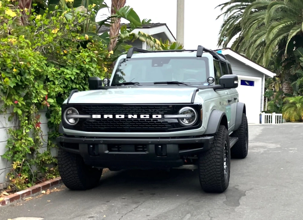 Ford has five heavy duty off-road trims, three of which are Badlands, Everglades, and Wildtrak, starting at $49,395, $55,520, and $60,025 msrps, respectively. All three trims get e-locking front and rear axles for better off-road performance. The Badlands has larger 33 inch all terrain tires with its 17-inch carbonized machine-faced aluminum wheels, a unique suspension with front stabilizer bar disconnect, and a hose-able rubber floor and vinyl seats. Everglades gets 35 inch mud tires, factory installed snorkel, factory-installed winch on the front bumper, heavy duty modular front bumper, and the vinyl seat / washout floor combo. The Wildtrak adds the 2.7L V6 turbo engine as standard, which is optional on other Bronco trims. It has 330 horsepower and 415 lb-ft of torque, much more than the 4-banger’s 325 lb-ft. Wildtrak also has 35-inch mud tires, Bilstein position-sensitive dampers, and fender flares, as well as leather-trimmed heated front seats.