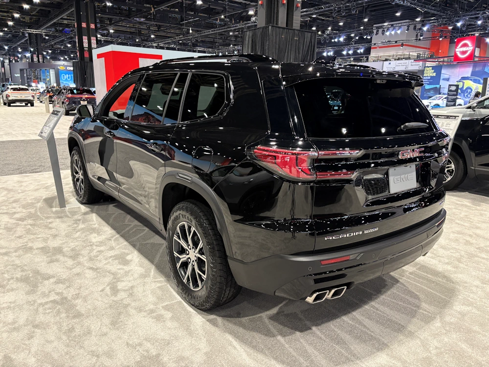 The redesign under that paint is significant. GMC’s newest Acadia grows in almost every direction, offering three rows of seating and generous cargo capacity that can reach up to 97.5 cubic feet with the second and third rows folded, 57.3 cubic feet behind the second row, and 23.0 cubic feet even with all seats in place. The exterior design section emphasizes a long wheelbase, tall roof, and wide track, all intended to give the SUV a bolder stance and more usable space inside. Where the previous generation felt closer to a large compact crossover, the current Acadia presents itself as a true midsize family hauler with a strong visual footprint. (GMC)
